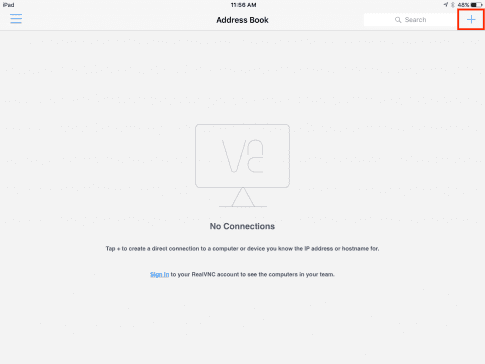• In VNC touch the plus (+) sign in the upper right hand corner