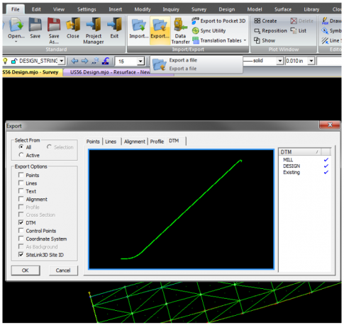 • Uncheck all Export Options except DTM