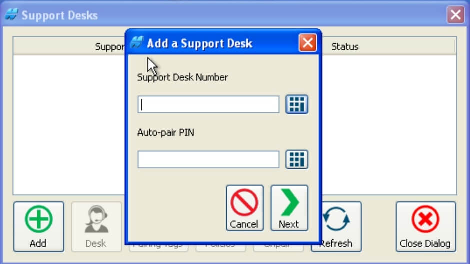 - Geben Sie die Support-Desk-Nummer und die PIN für die automatische Kopplung ein (falls verfügbar).