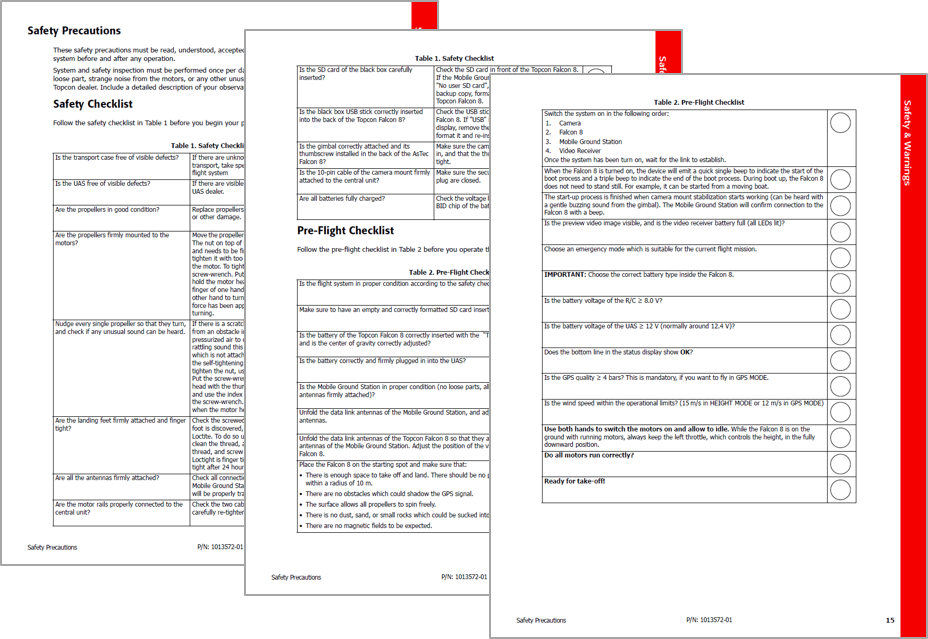• With the UAS setup, connected to a laptop with a flight plan loaded the next steps on operating and conducting the flight mission can be performed.   As mentioned previously, please refer to the Falcon 8 pre-flight checklist for a full list of setup items for the UAS prior to moving forward.