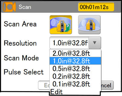 • After setting the Scan Area, set the Resolution to 1.0in@32.8ft