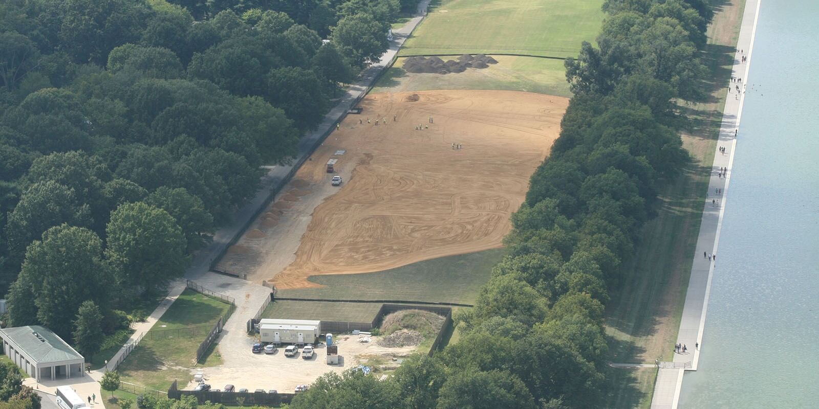 The intrinsic beauty of GPS is rarely seen as clearly as it once was at the National Mall in Washington, D.C. There, an arsenal of GPS equipment and a small army of volunteer workers, helped bring the work of artist Jorge Rodríguez-Gerada to life, transforming the mall from a well-worn plot of grass to a six-acre earth/sand/gravel composite portrait. Rodríguez-Gerada calls a GPS rover his “digital paintbrush,” and, given the results of the “facescape” project in the nation’s capital, it’s obvious he wields it well.