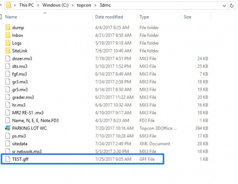 • Emplacement du répertoire sur un collecteur de données : My Device > TOPCON > 3DMC.