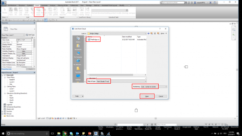 Positioning is set to Auto – Center to Center. This means the insertion point of the point cloud matches the local origin of the Revit project