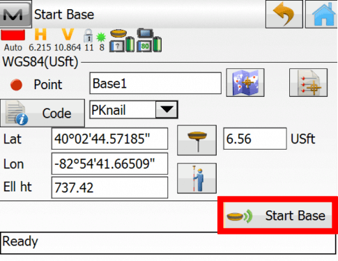 • Select highlighted measurement button to get current GNSS position from base receiver