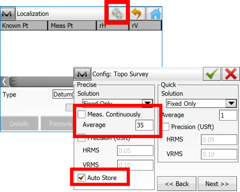 • Increase the number of Average measurements to 30 epochs or more. The more averaged measurements taken results in tighter overall residuals