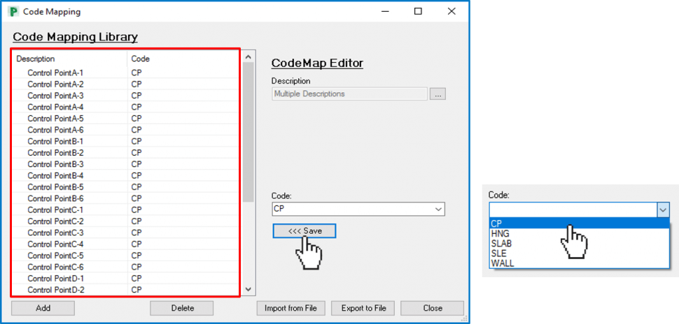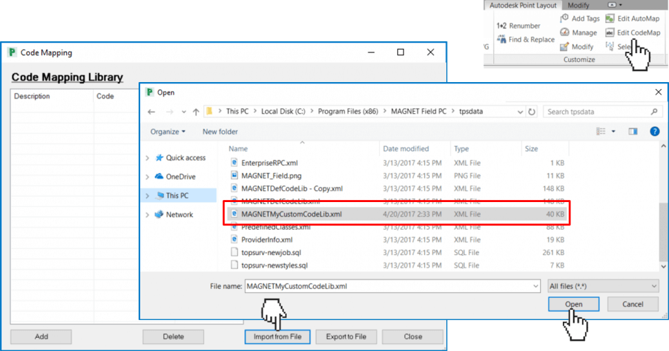 How to import a code library into Autodesk Point Layout (created in the MAGNET Field environment) and perform a code mapping for further export to MAGNET Field.